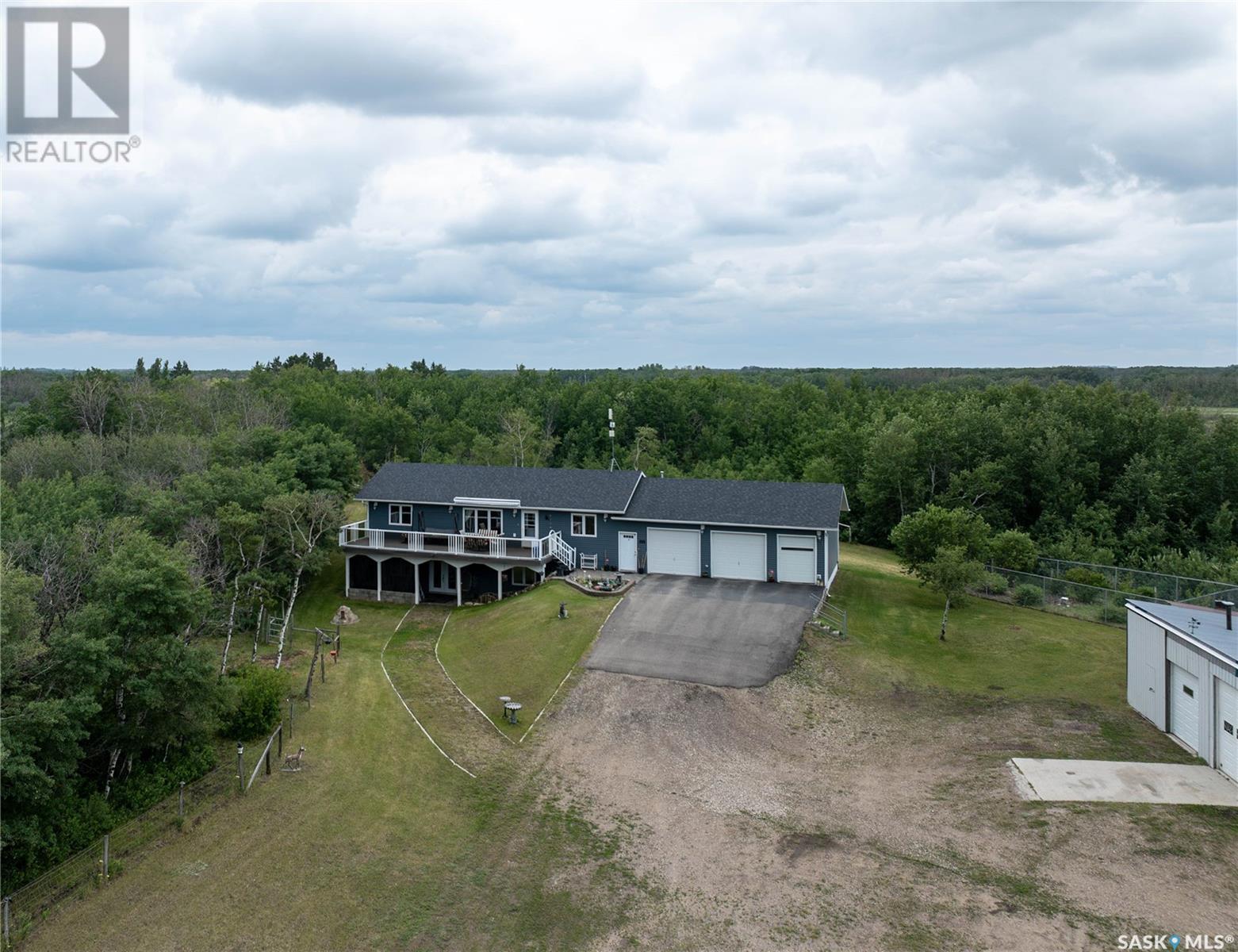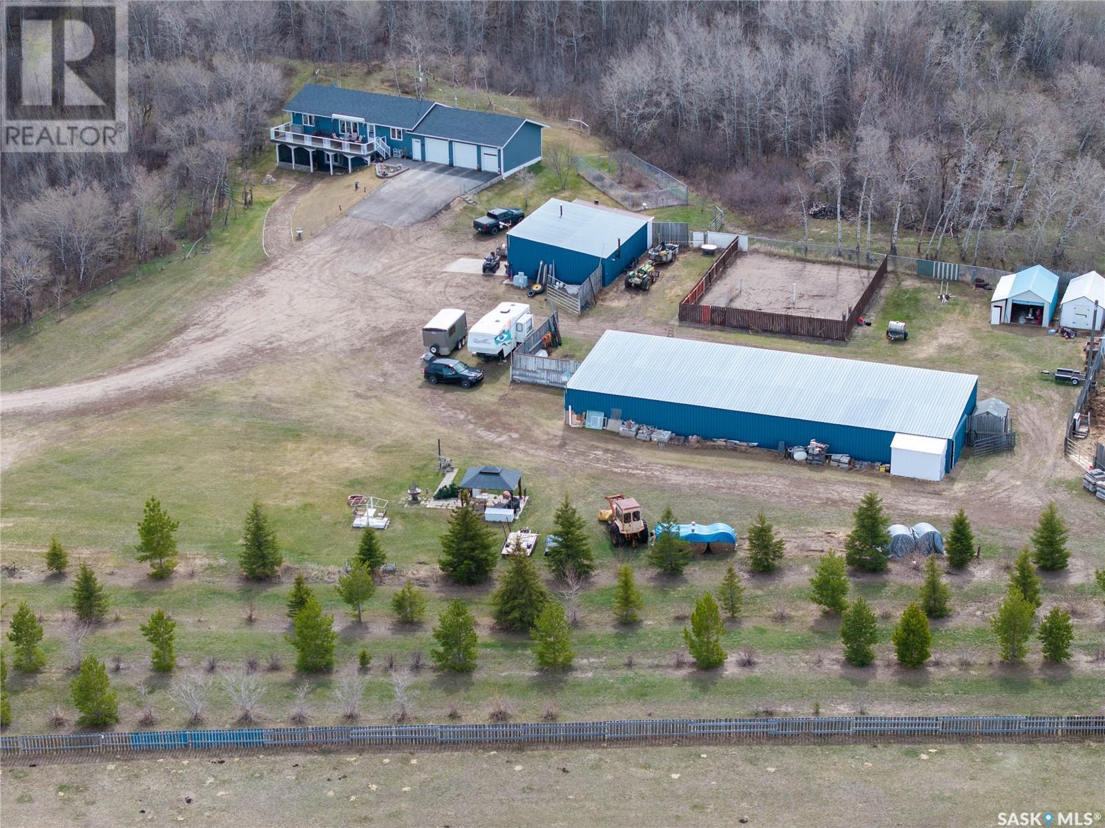 This beautiful acreage real estate listing is situated just 25 minutes from Saskatoon, offering a serene escape in a picturesque prairie setting. Spanning 25.93 acres, the property features a charming 1200 sq ft bungalow that is fully finished and perfect for families or individuals seeking a peaceful retreat. The home includes two well-appointed bedrooms on the main floor, along with a convenient main floor laundry for added ease and functionality. The fully finished walkout basement boasts an additional two bedrooms, a bar, and a cozy TV viewing area—ideal for entertaining or relaxing with family. Accompanying the home is a spacious triple car garage, providing ample storage for vehicles and equipment. Additionally, the property includes a heated shop, a large building suitable for livestock or storage, and corals designed for safe animal handling. Currently, the property is home to two horses that graze peacefully on 17 acres of lush grass, enhancing the rural ambiance. One of the standout features of this acreage is its tranquil environment, which boasts an abundance of natural habitat, making it ideal for outdoor activities and enjoying the beauty of nature. Furthermore, the convenience of having a school bus stop directly in front of the property ensures easy transportation for children, providing peace of mind for families. Overall, this well-maintained property offers a perfect blend of rural charm and modern convenience, making it an excellent choice for anyone looking to embrace a quiet lifestyle while remaining close to city amenities. (id:43042)
