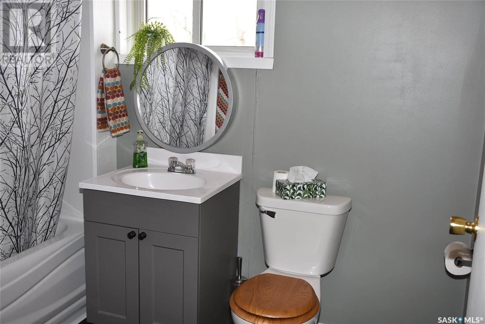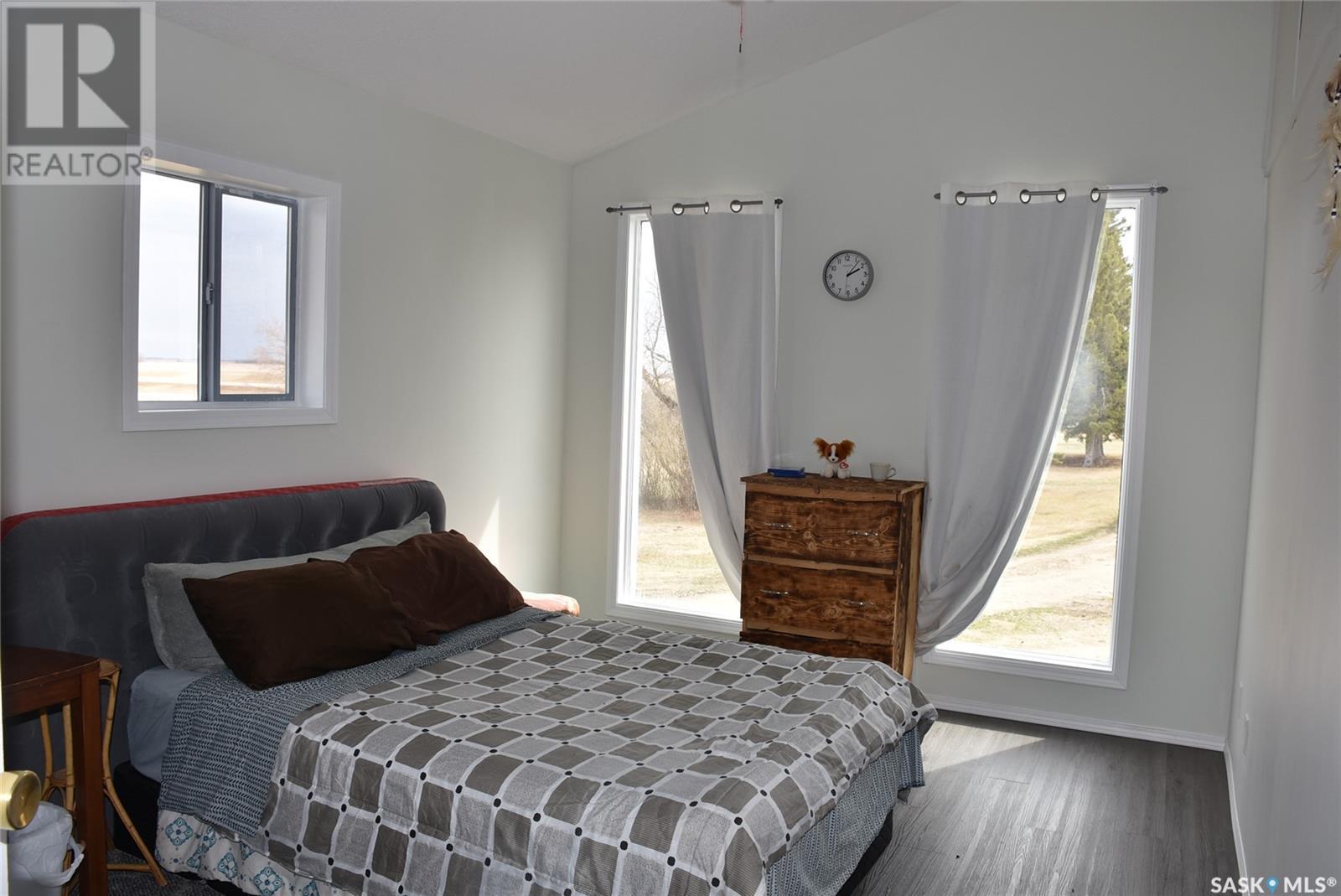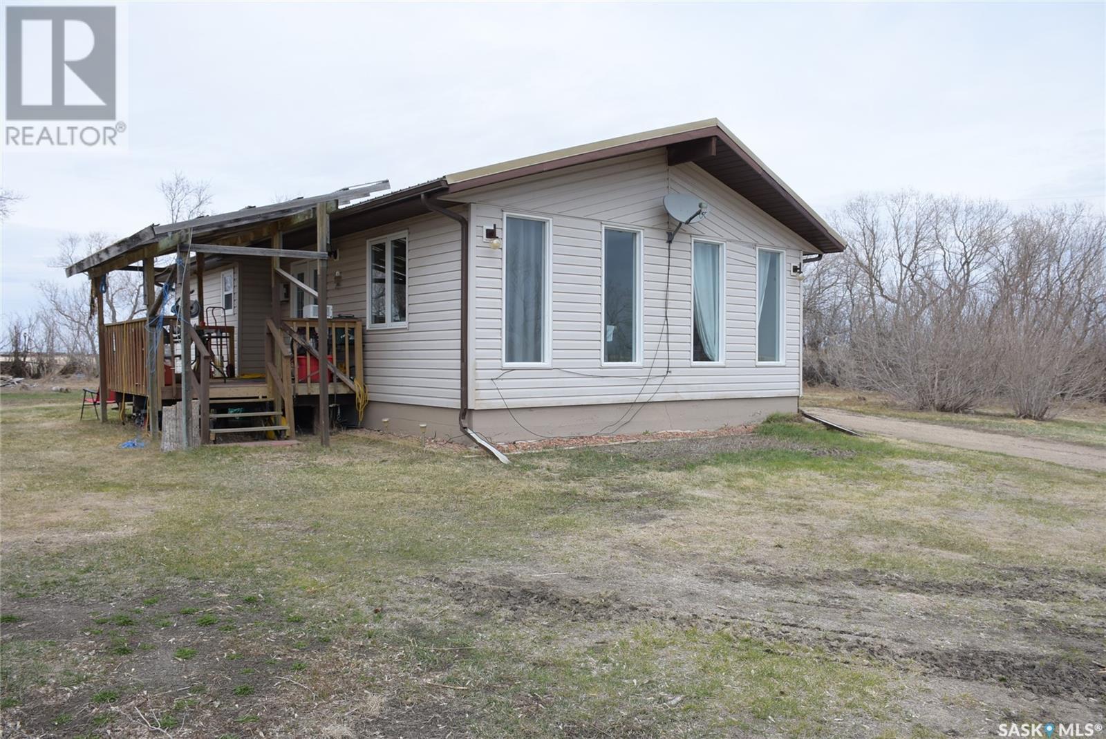 This updated home is located only 2 km West of the progressive town of Balcarres. The home has been updated with newer windows, metal roofing, flooring, updated kitchen area, spacious living room with access to a covered deck, 2 large bedrooms, new 4-piece bathroom and large Foyer with lots of storage. The home has new paint throughout. The basement is partially finished with a large family room space, lots of storage and large utility room. The water source is a 1000 gallon cistern and the seller hauls water from Balcarres 2 km away. The water is treated and has gone through the town's reverse osmosis system for great soft water. The well treed Acreage is 7.65 acres and give lots of space for future building and tons of room for the kids to play or maybe a horse. The metal bins at the back of the property are not owned by the seller and are not included in the sale. (id:43042)