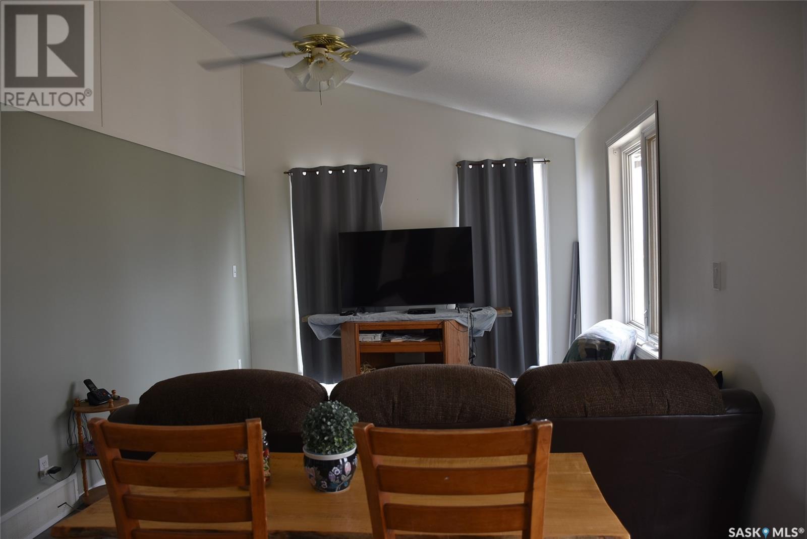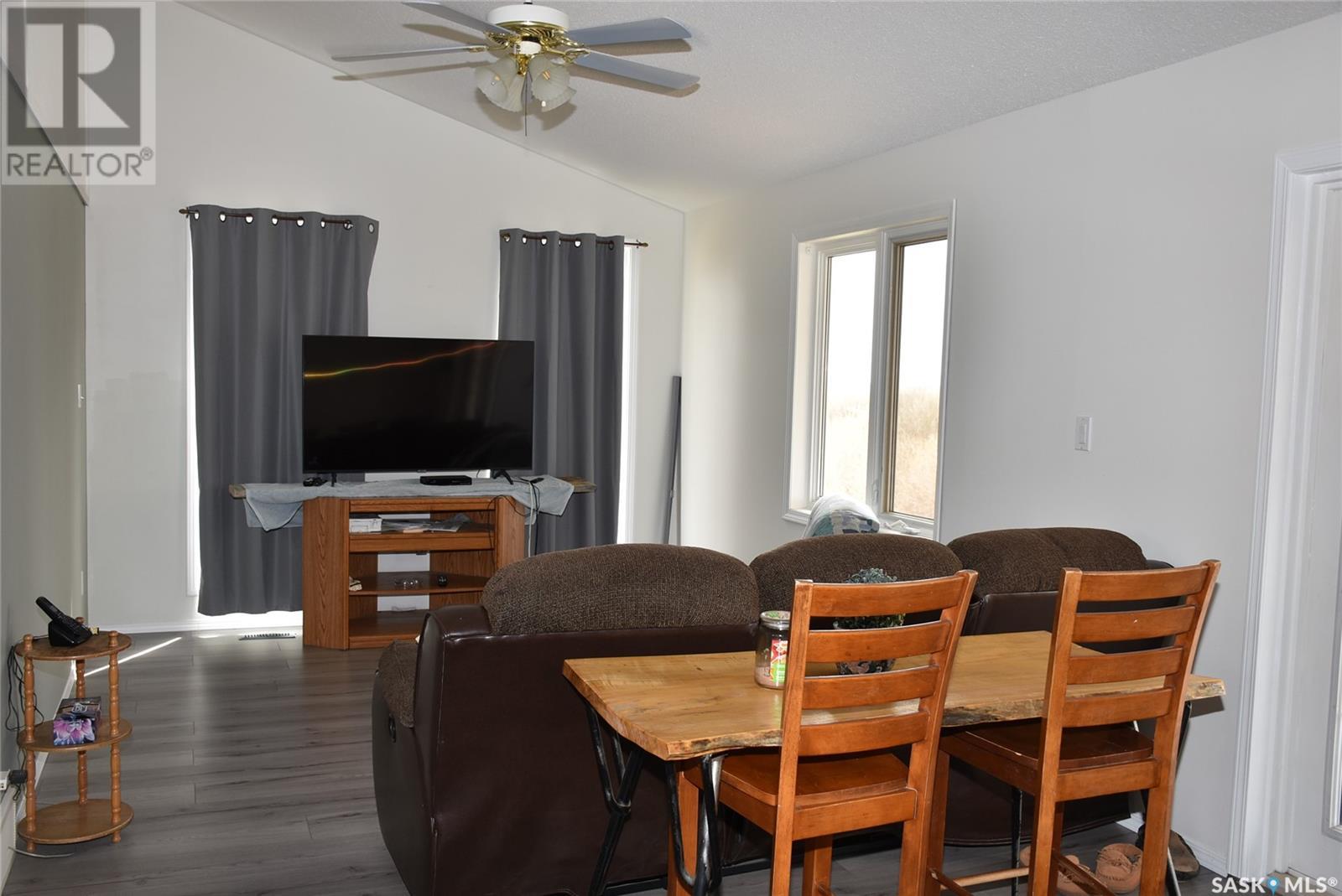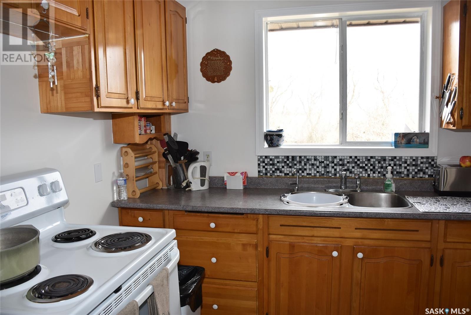 This updated home is located only 2 km West of the progressive town of Balcarres. The home has been updated with newer windows, metal roofing, flooring, updated kitchen area, spacious living room with access to a covered deck, 2 large bedrooms, new 4-piece bathroom and large Foyer with lots of storage. The home has new paint throughout. The basement is partially finished with a large family room space, lots of storage and large utility room. The water source is a 1000 gallon cistern and the seller hauls water from Balcarres 2 km away. The water is treated and has gone through the town's reverse osmosis system for great soft water. The well treed Acreage is 7.65 acres and give lots of space for future building and tons of room for the kids to play or maybe a horse. The metal bins at the back of the property are not owned by the seller and are not included in the sale. (id:43042)