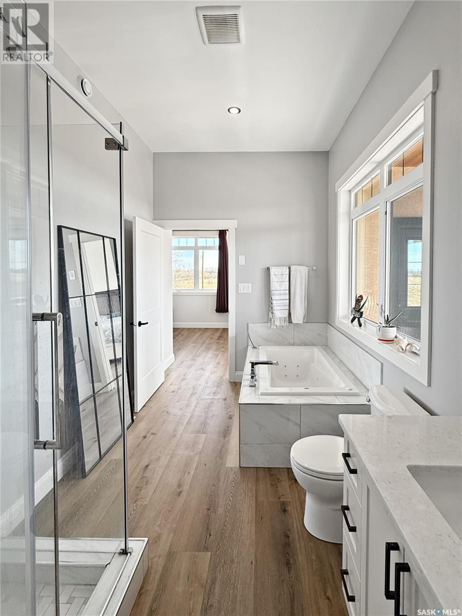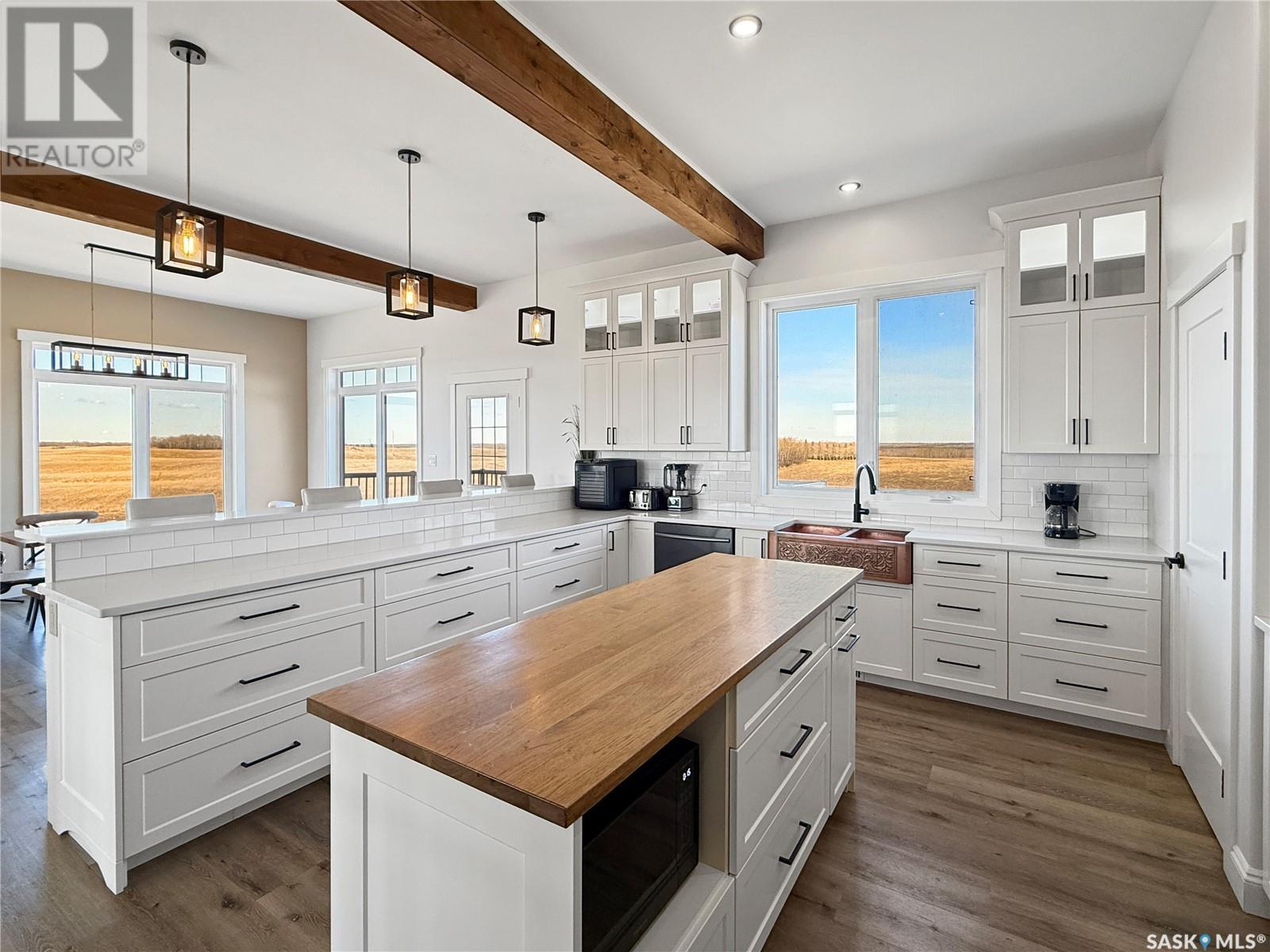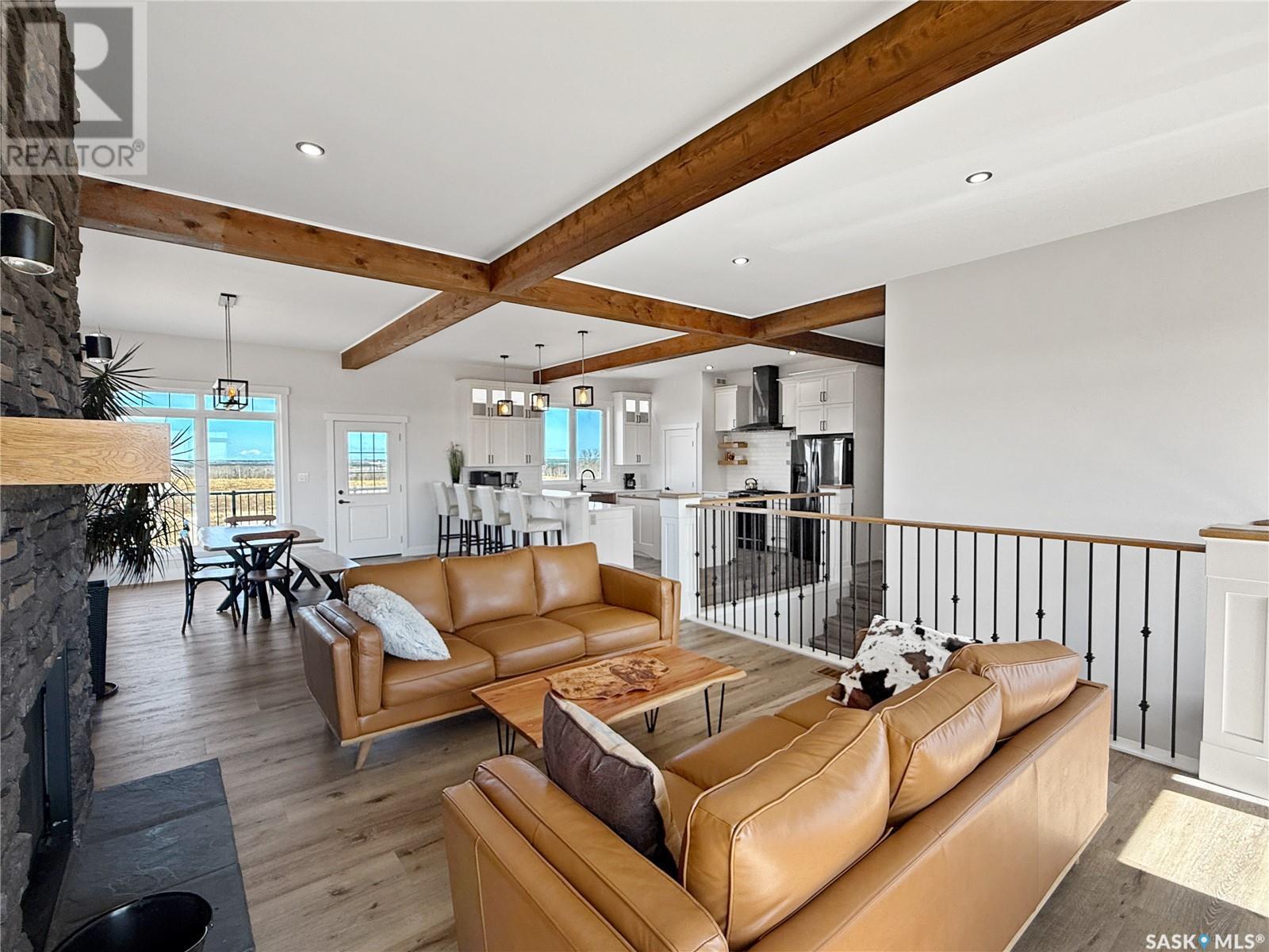 Country living at its finest—with breathtaking views! This stunning custom-built home offers 2,835sqft of thoughtfully designed living space, featuring 4 bedrooms, 3 bathrooms, triple attached garage, all set on 10 beautiful acres just minutes from town. The combination of 10-foot ceilings and oversized windows floods the main level with natural light, creating a perfect balance of warmth and comfort throughout the home. The open-concept design features a chef’s kitchen complete with a center island, breakfast bar, 6-burner gas range, ample cupboard space, walk-in pantry, and a charming copper farmhouse sink. The bright and spacious living room is anchored by a wood-burning fireplace, seamlessly flowing into a generous dining area. The primary bedroom offers stunning views, abundant natural light, a luxurious 5-piece ensuite, walk-in closet, and direct access to the deck. Two additional oversized bedrooms and a beautifully appointed 3-piece bathroom complete the main level. Enjoy two thoughtfully designed outdoor spaces that take full advantage of the breathtaking country views. The lower level showcases 9-foot ceilings and oversized windows, creating a bright and inviting space. It features a full kitchen suite, additional living room, bedroom, 4-piece bathroom, and a dedicated office. A spacious combined mudroom and laundry area provides convenient access to the triple garage. The main garage measures 30' x 26' with a drive-through bay, complemented by an additional 14' x 22' bay. Other notable features include: city water, central air, pump out, led lighting, and so much more. This can be #yourhappyplace. (id:43042)