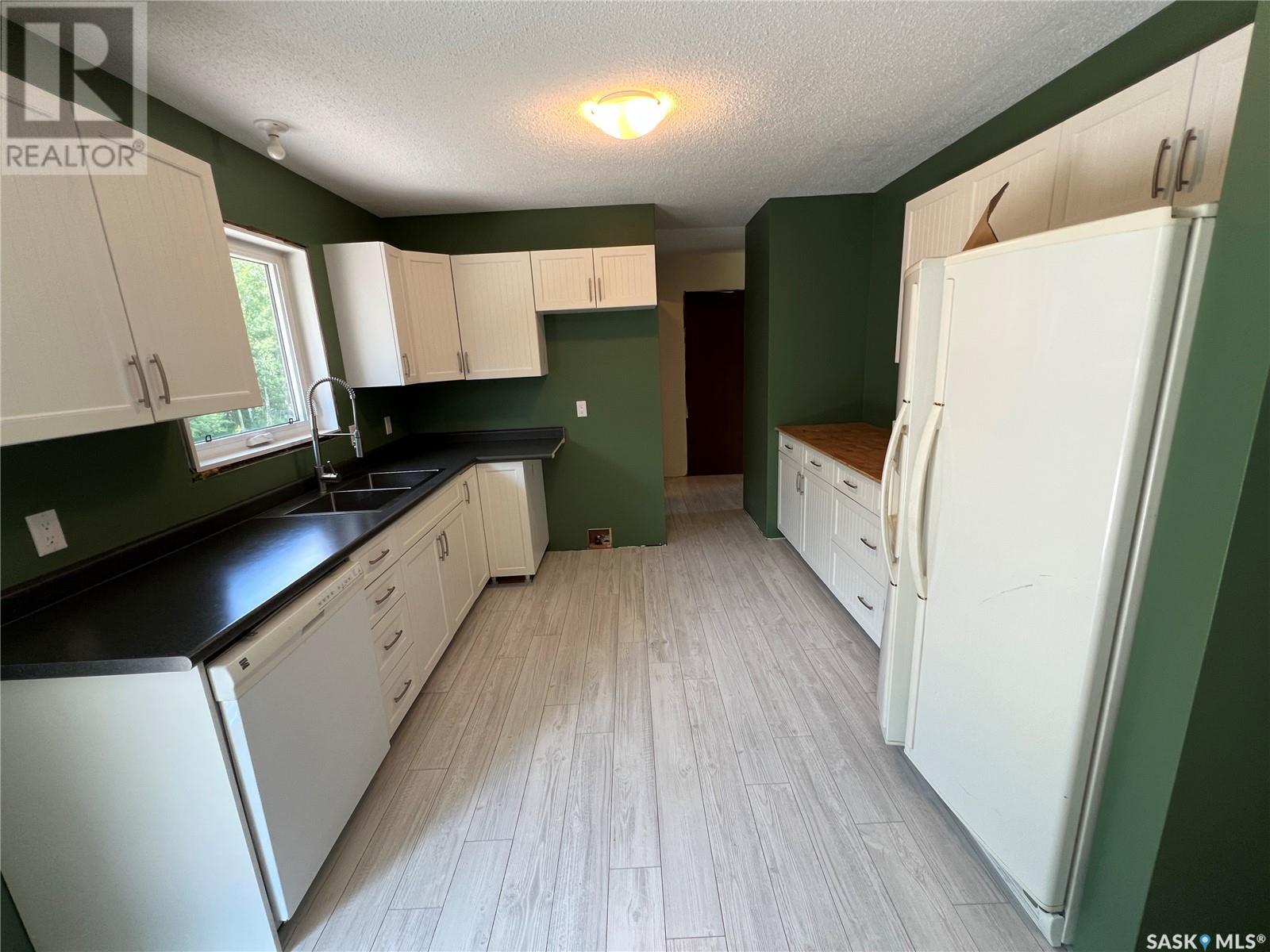Located just 20 minutes from Candle Lake, this spacious 4-level split home sits on a beautiful 2.02 acre parcel and offers the perfect blend of privacy and space. The main floor features a functional layout with a comfortable living room, a good sized bedroom and a 4 piece bathroom. The second level showcases a bright kitchen that has crisp white cabinetry and ample storage. The open dining area leads out to a sprawling deck which is perfect for entertaining family and friends. This level is complete with a secondary living room featuring a large picture window, a wood fireplace with a beautiful stone surround and direct access to the front deck which is an ideal spot for enjoying your morning coffee. The third level includes three more bedrooms and a convenient 2 piece bathroom that provides comfortable accommodations for the entire family. The unfinished basement includes a dedicated laundry area, utility room and plenty of storage. The expansive yard invites outdoor living, with mature trees enhancing the sense of seclusion and tranquility. A fully insulated double attached garage adds year-round comfort and functionality, making this home as practical as it is peaceful. Don’t miss your opportunity to experience the benefits of acreage living just minutes from the lake. Call today to book your showing! (id:43042)