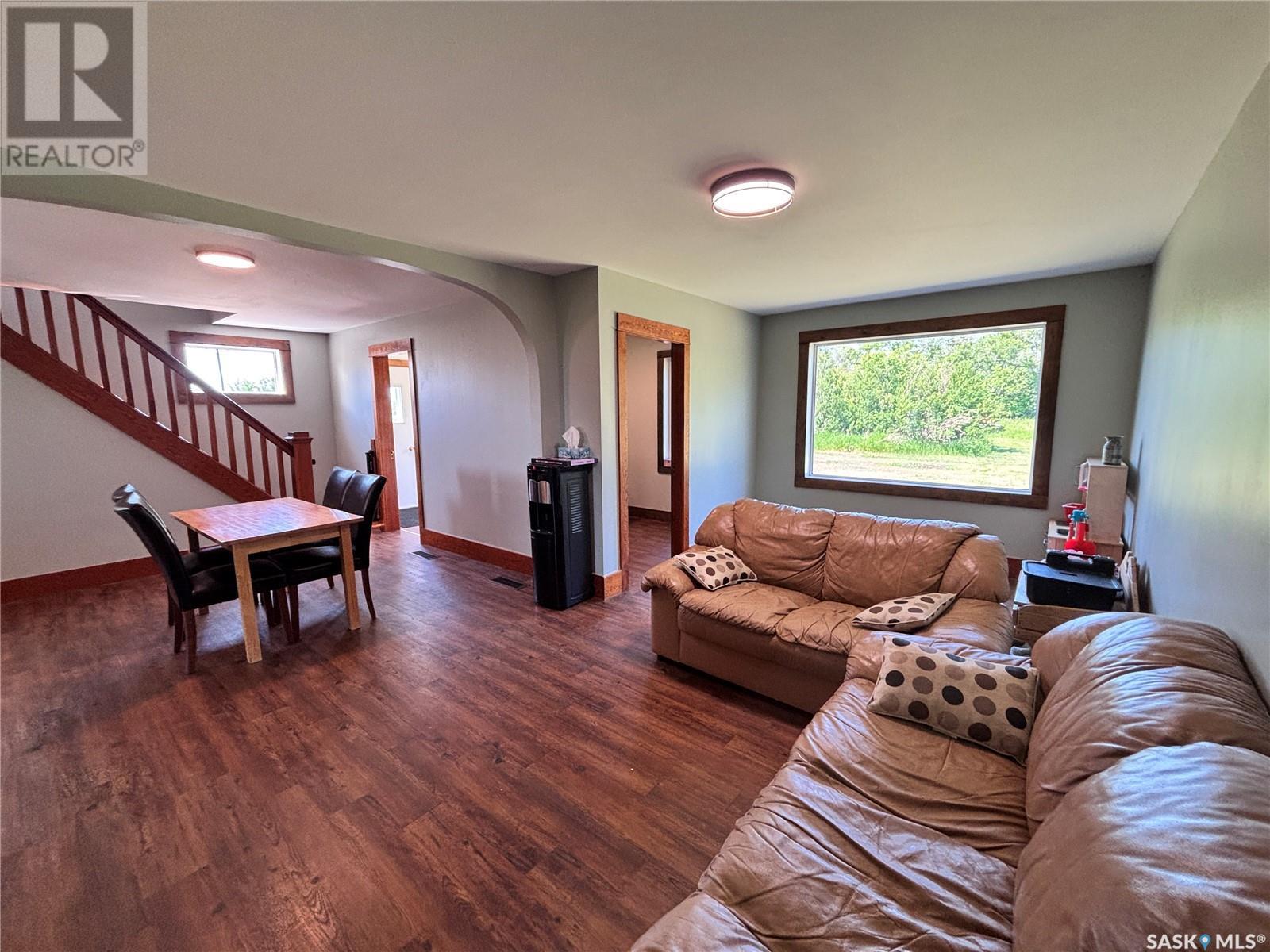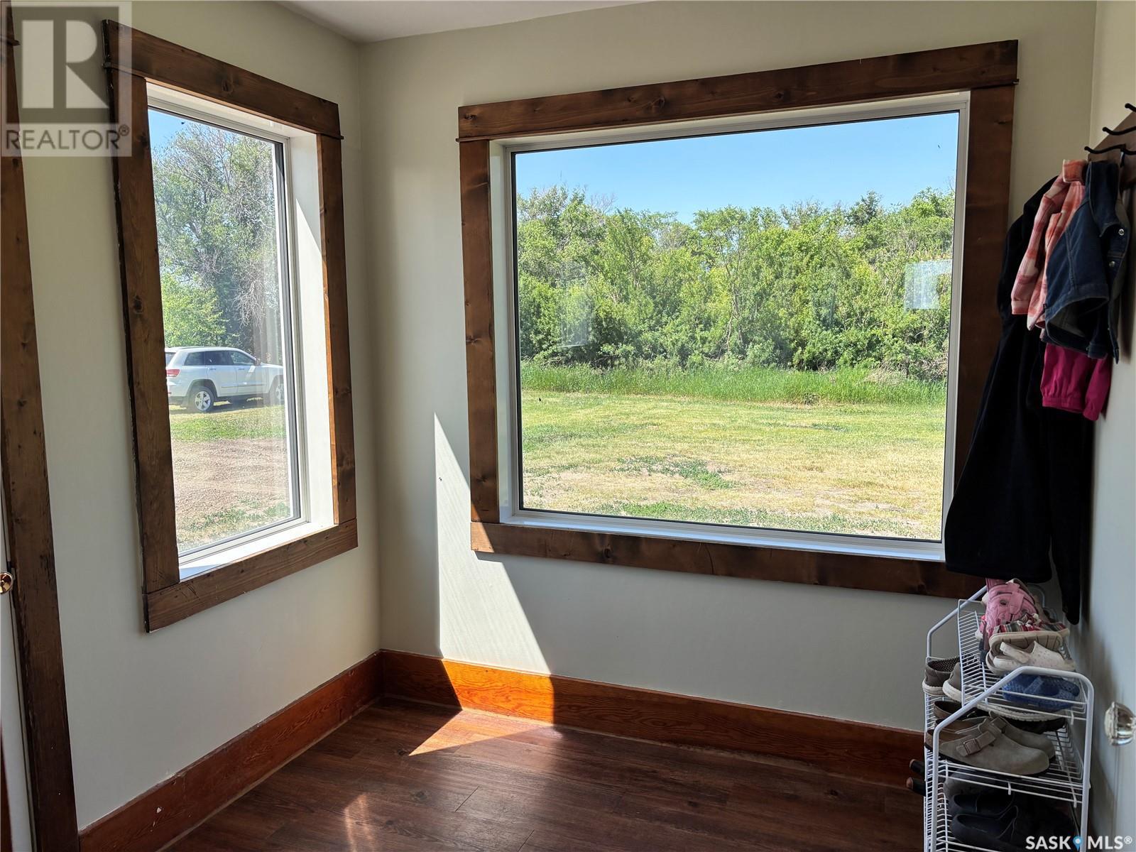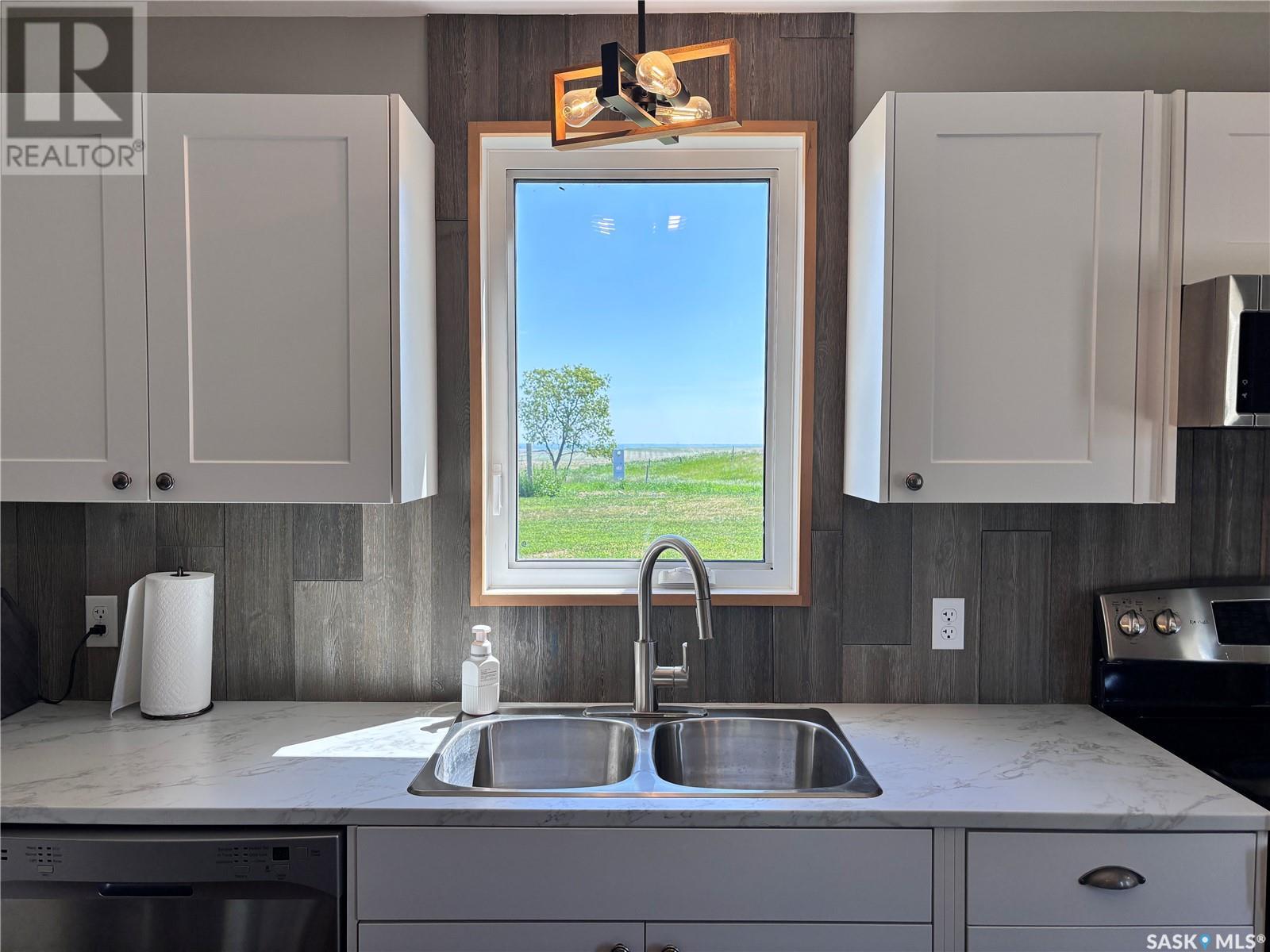 Nestled on an expansive 40 acres, this exceptional property offers the perfect blend of rural living with the convenience of nearby amenities. At just under 1,400 sq ft, this charming 1940 built home has been lovingly maintained and thoughtfully upgraded. Step into the oversized mudroom, with laundry and 3pc bath steps away, a must for country living! The heart of the home features a spacious, upgraded kitchen with new cupboards, SS appliances, a functional island and open shelving with a coffee bar! The country charm continues upstairs with original wood stairs, banister and floors throughout. 2 bedrooms, 4pc fully renovated bath and 2 of the cutest wooden doors for all your storage needs! (complete with skeleton key) Energy efficiency is at the forefront, with a state-of-the-art geothermal heating and cooling system, on-demand hot water heater, upgraded windows, siding insulation, PEX water lines, sewer system, drilled well with potable water and underground power lines. Outside you will find a a double car garage and barn for storage, concrete pad and garage apron, plenty of room for gardening and just enjoying the views of Stockwell Lake! With its combination of upgraded features, historic charm and spanning greenspace, this is more than just a house- its an opportunity to live the lifestyle you have always dreamed off! Don't miss your chance to own this unique and versatile retreat! Distance to Outlook: 23 Minutes Saskatoon: 1h 17 Minutes Lake Diefenbaker: 27 Minutes Directions: Drive South (approx) 15KM on Surbiton Road (across from Conquest East access road) off Highway 15. Turn LEFT at sign, LEFT at end of shared road. Directions: Drive South (approx) 15KM on Surbiton Road (across from Conquest East access road) off Highway 15. Turn LEFT at sign, LEFT at end of shared road. (id:43042)