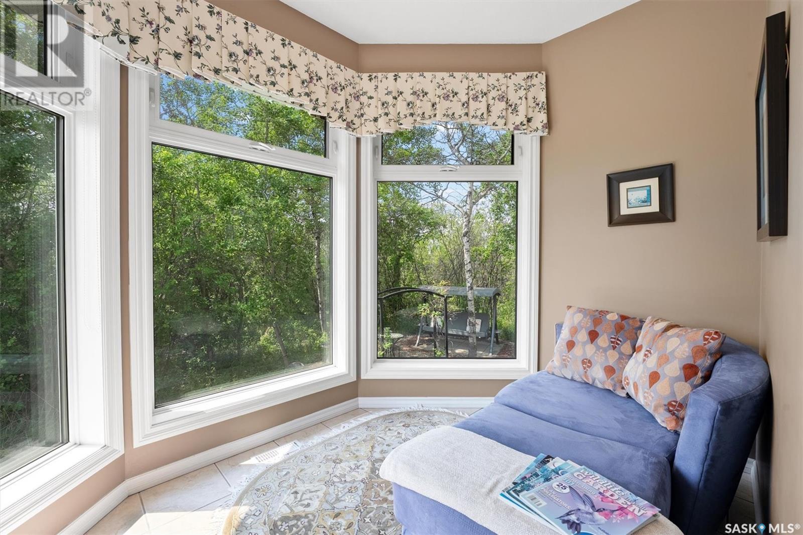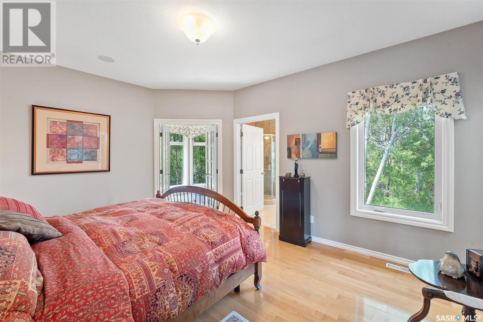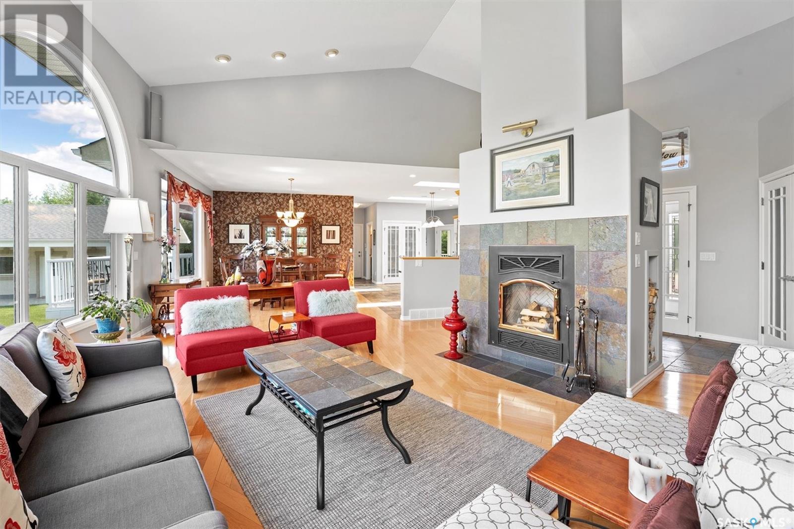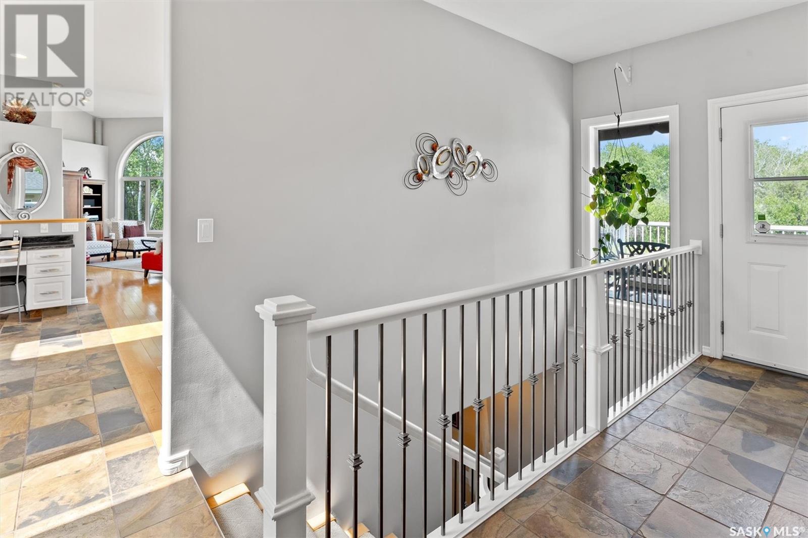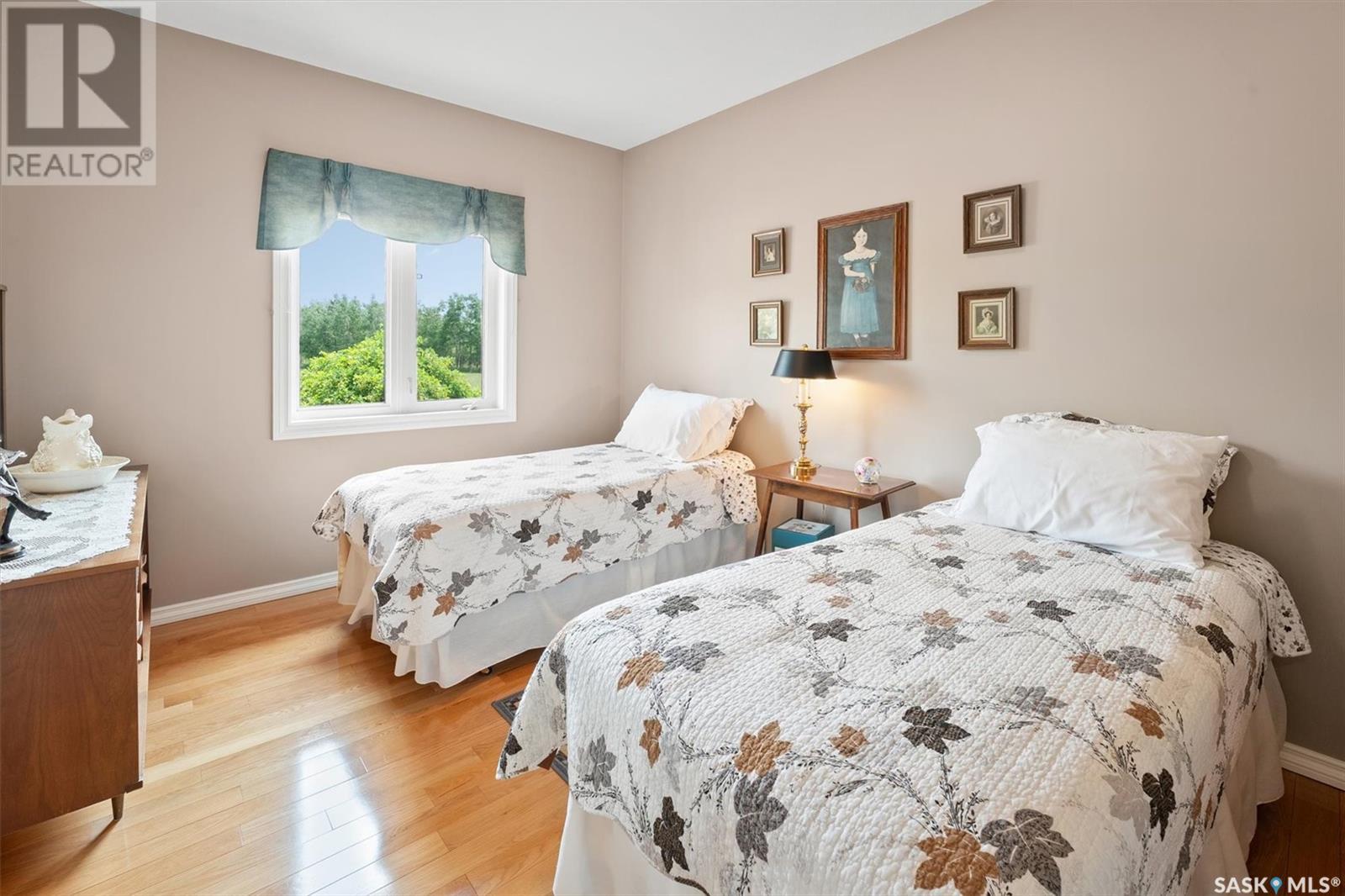 Welcome to The Meadow, a rare opportunity to own 80 acres of pure serenity on the southeast doorstep of Saskatoon. This peaceful paradise offers the privacy and tranquility of country living, just minutes from Costco and Greenbryre Golf & Country Club. This sprawling, custom-built Ehrenburg bungalow is designed for comfort, beauty, and connection to the nature. The grand front entry welcomes you with soaring vaulted ceilings and a sweeping sense of space. The centerpiece of the great room is a stunning wood-burning fireplace, creating a warm, inviting atmosphere enhanced by floor-to-ceiling windows that frame breathtaking views of the wilderness waiting for you out your back door. White oak hardwood gleams throughout the main floor, paired with slate tile in the foyer and kitchen. The spacious kitchen features a large 8-foot granite island, gas stove, built in oven, ample cupboard space, and easy flow into a turret-shaped sun porch—perfect for morning coffee or sunny, lazy afternoons. This south-facing gem is flooded with natural light and designed to make the most of every season. The main floor also includes laundry, three well-appointed bathrooms, and three bedrooms. The primary bedroom offers a peaceful retreat, complete with a three-piece ensuite and a private turret-shaped sunroom for year-round quiet moments of rest and reflection. Additional features include a heated double attached garage and a wide single detached garage with shower and bathroom facilities—an ideal workshop with ample space for storage and tons of room for any project. The full basement is ready for your custom development, with in-floor heating lines already roughed in. Whether you're looking to raise a family, escape the city, or simply enjoy life in harmony with nature, The Meadow delivers the best of all worlds—privacy, space, and proximity to everything you need. Must be experienced to be fully appreciated. Call your favourite Realtor® to arrange a private viewing today! (id:43042)