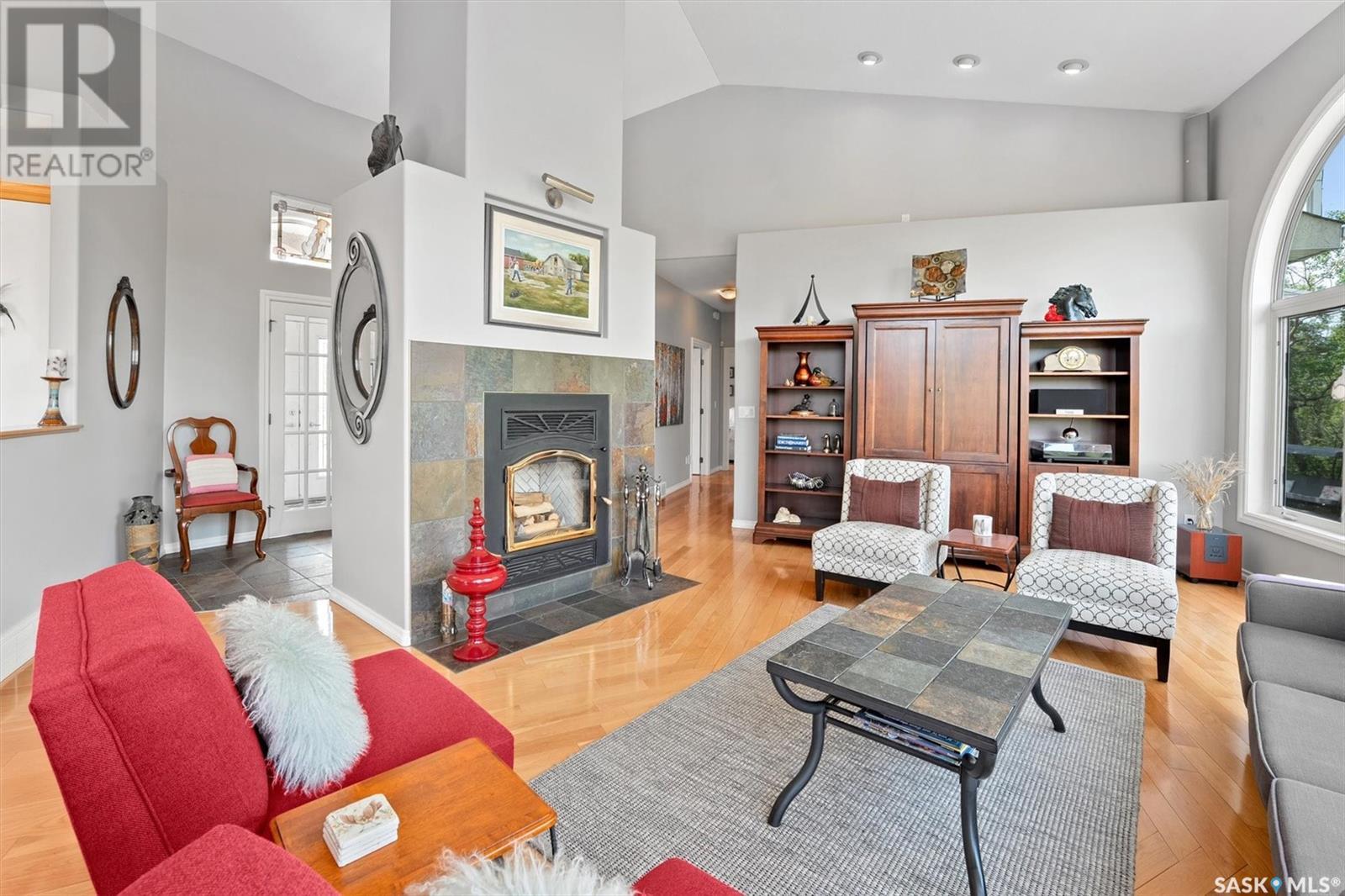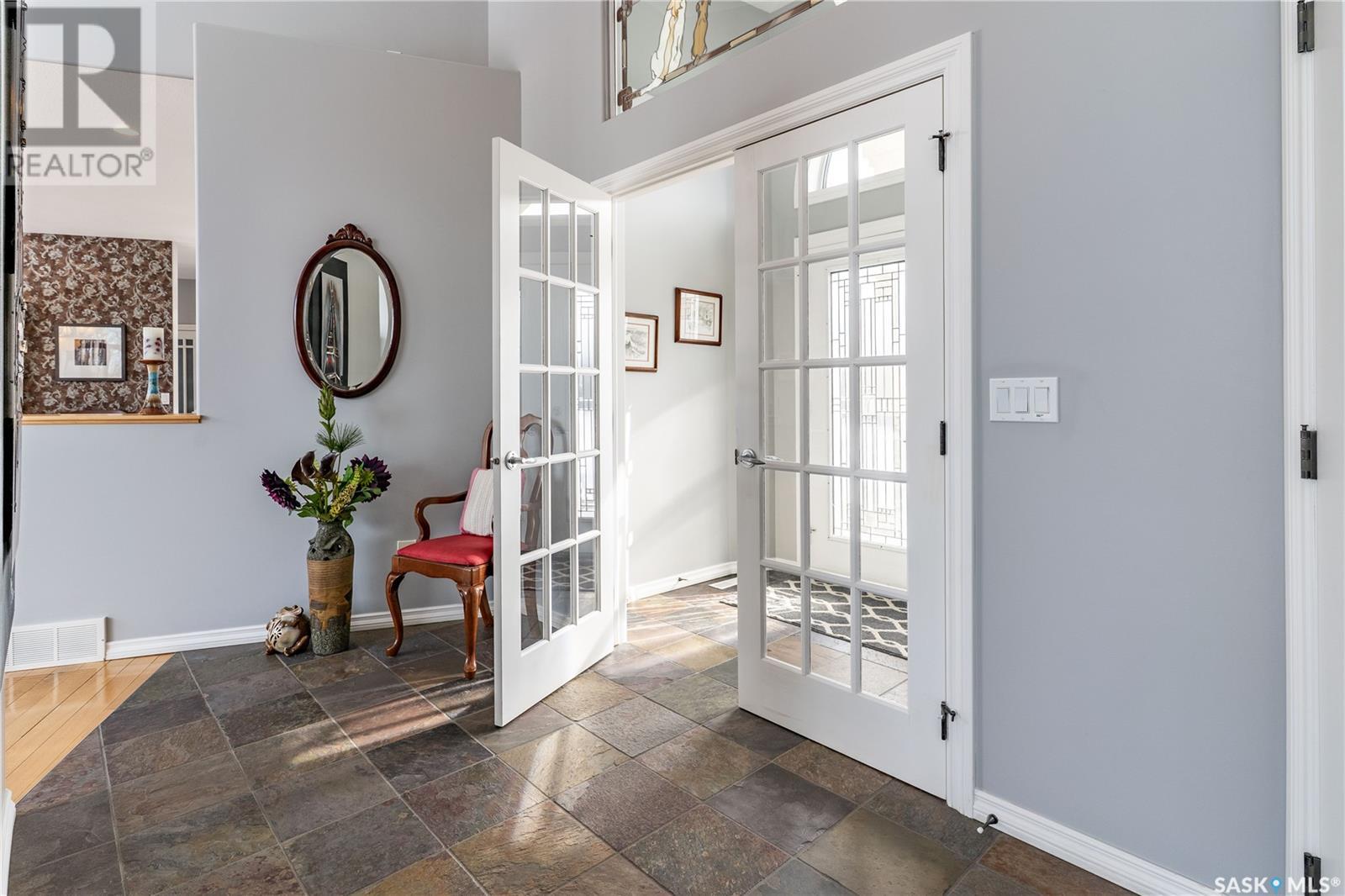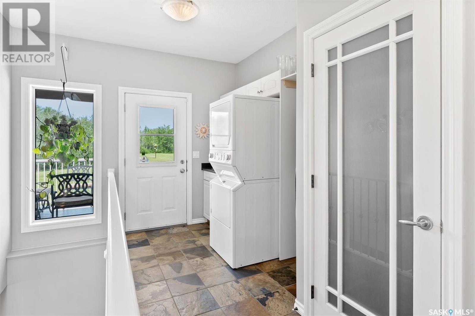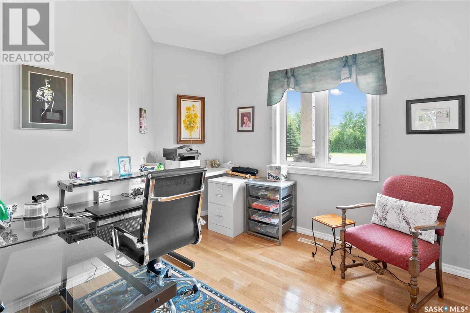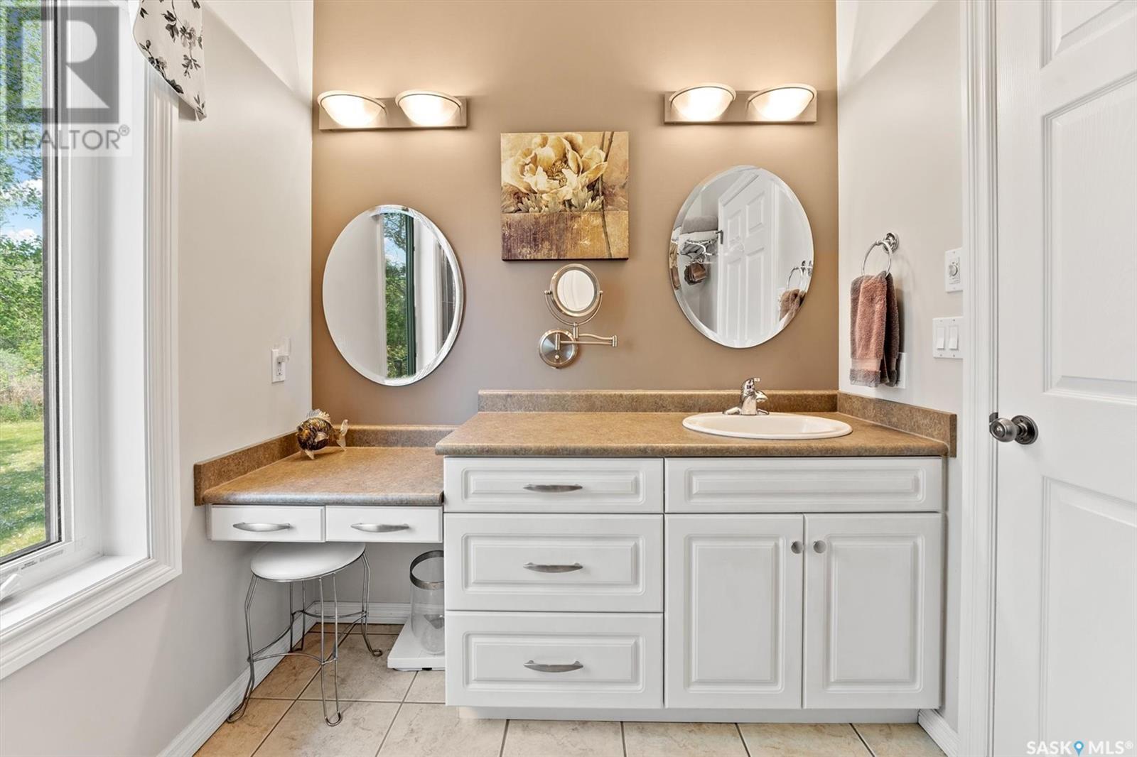 Welcome to The Meadow, a rare opportunity to own 80 acres of pure serenity on the southeast doorstep of Saskatoon. This peaceful paradise offers the privacy and tranquility of country living, just minutes from Costco and Greenbryre Golf & Country Club. This sprawling, custom-built Ehrenburg bungalow is designed for comfort, beauty, and connection to the nature. The grand front entry welcomes you with soaring vaulted ceilings and a sweeping sense of space. The centerpiece of the great room is a stunning wood-burning fireplace, creating a warm, inviting atmosphere enhanced by floor-to-ceiling windows that frame breathtaking views of the wilderness waiting for you out your back door. White oak hardwood gleams throughout the main floor, paired with slate tile in the foyer and kitchen. The spacious kitchen features a large 8-foot granite island, gas stove, built in oven, ample cupboard space, and easy flow into a turret-shaped sun porch—perfect for morning coffee or sunny, lazy afternoons. This south-facing gem is flooded with natural light and designed to make the most of every season. The main floor also includes laundry, three well-appointed bathrooms, and three bedrooms. The primary bedroom offers a peaceful retreat, complete with a three-piece ensuite and a private turret-shaped sunroom for year-round quiet moments of rest and reflection. Additional features include a heated double attached garage and a wide single detached garage with shower and bathroom facilities—an ideal workshop with ample space for storage and tons of room for any project. The full basement is ready for your custom development, with in-floor heating lines already roughed in. Whether you're looking to raise a family, escape the city, or simply enjoy life in harmony with nature, The Meadow delivers the best of all worlds—privacy, space, and proximity to everything you need. Must be experienced to be fully appreciated. Call your favourite Realtor® to arrange a private viewing today! (id:43042)