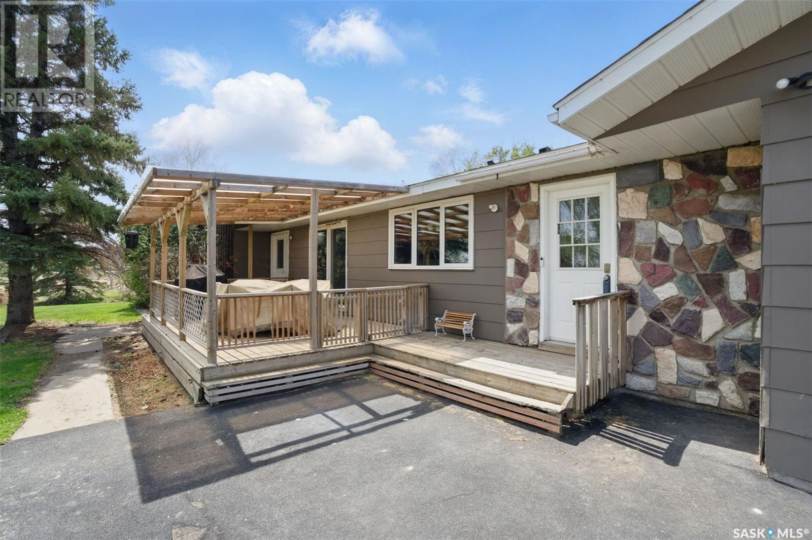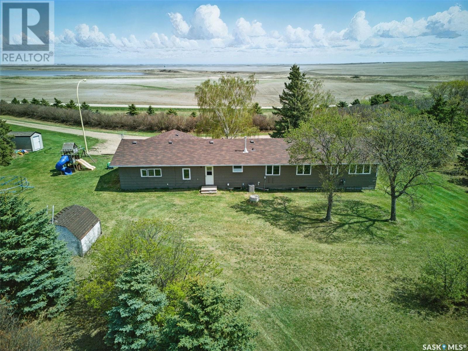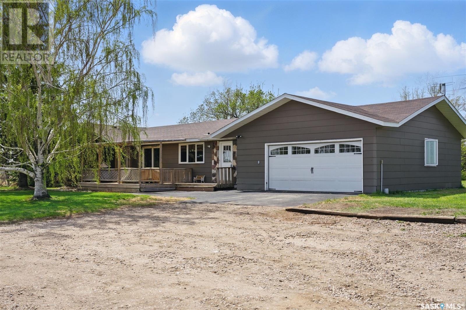 Looking for the serenity of country living? This sprawling bungalow on a 10 acre parcel of land has tons of room to work or play. As you pull in the curved driveway, you'll notice the mature shelterbelt and spacious home. Step into a huge mudroom fitted with locker style storage. Accessing the home office, garage or leading into the kitchen/dining room, this is the perfect "launch pad" space. Home office overlooks the back yard and has a barn door for privacy. Laundry and a 2 pc bath are easily accessed from the mud room, no need to walk through the whole house in your chore clothes and boots. Kitchen/dining area is huge and open, with an island perfect for food prep or entertaining. Sliding doors from the dining area to the covered deck offer great outdoor access for barbequeing or enjoying warmer days and nights. Huge living room with floor to ceiling windows and hardwood floor is the perfect hangout for family movie night or whatever your heart desires. 3 good sized bedrooms and a 5 pc bath (douuble vanity) complete the main floor. Basement is also fully finished with a huge family room, 2 bedrooms, a 3 pc bath and storage/utility room. Water source is a well with RO system. Updates are many, including flooring, bathrooms, kitchen, mudroom storage, septic tank, pvc piping, some interior doors/closet doors and more! Attached garage offers parking out of the elements and room to work or store outdoor gear. Call today to book your viewing appointment! (id:43042)