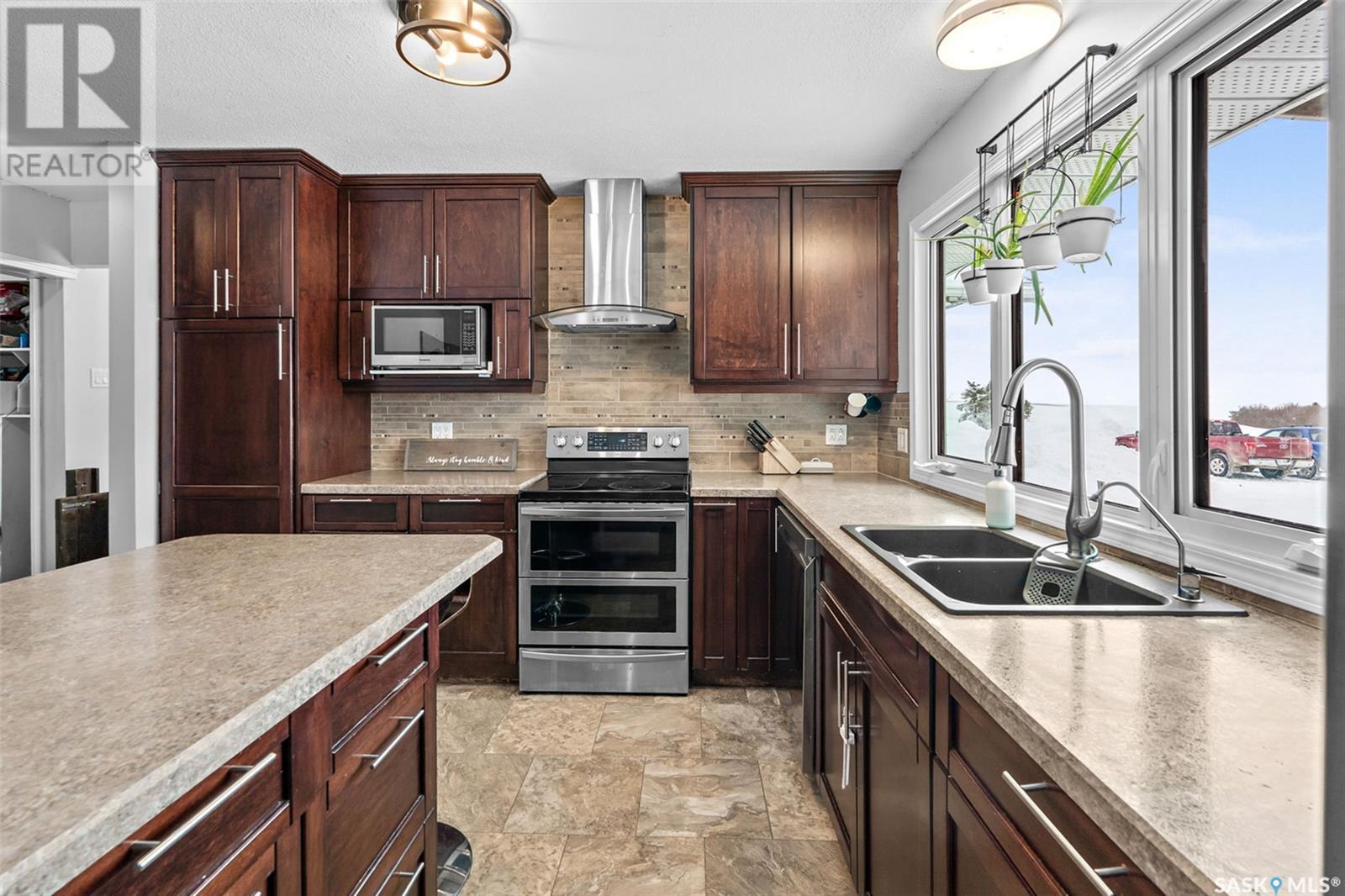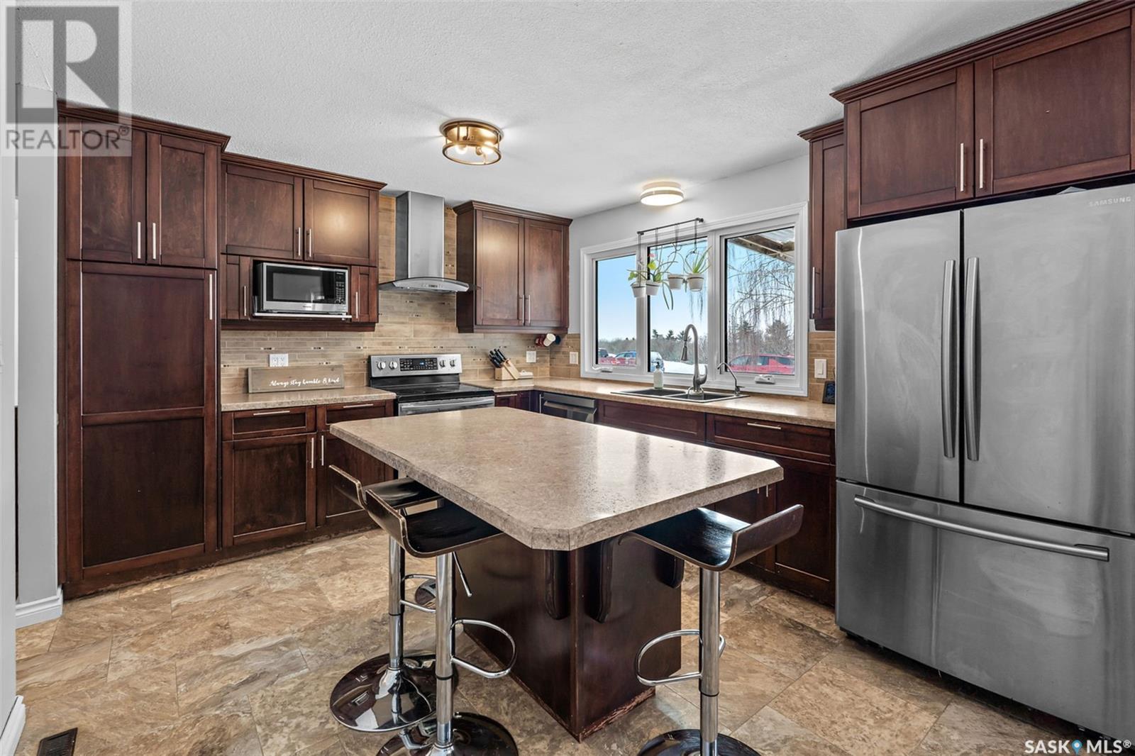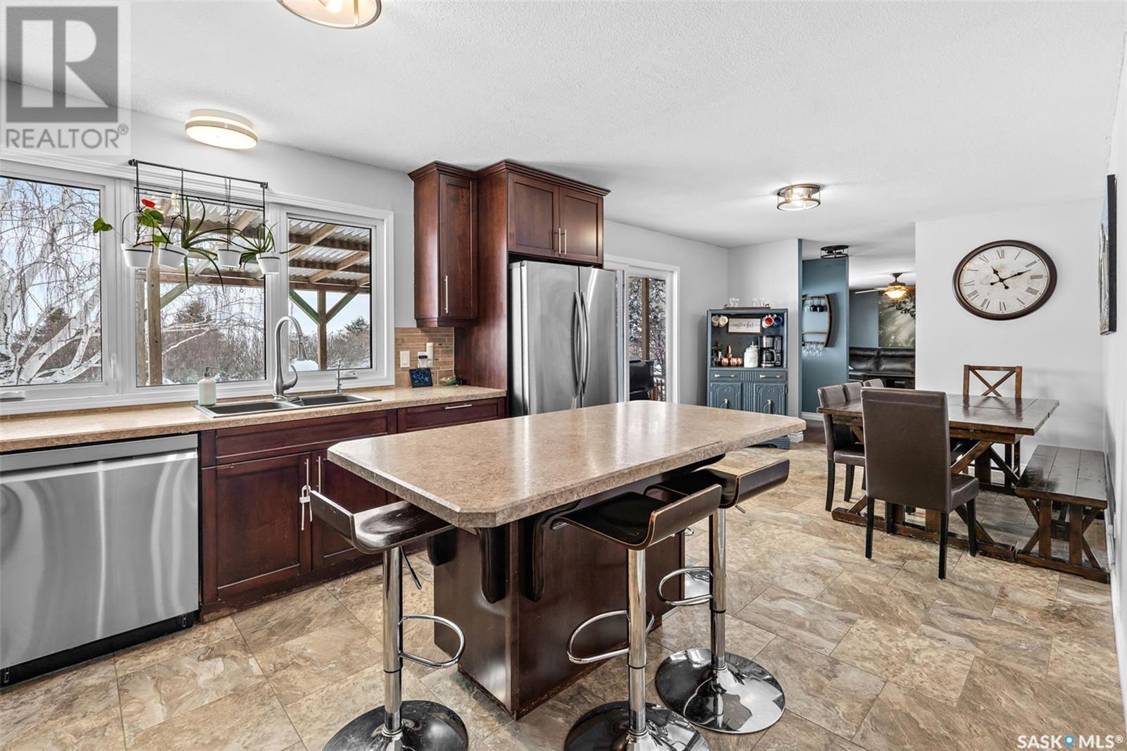Looking for the serenity of country living? This sprawling bungalow on a 10 acre parcel of land has tons of room to work or play. As you pull in the curved driveway, you'll notice the mature shelterbelt and spacious home. Step into a huge mudroom fitted with locker style storage. Accessing the home office, garage or leading into the kitchen/dining room, this is the perfect "launch pad" space. Home office overlooks the back yard and has a barn door for privacy. Laundry and a 2 pc bath are easily accessed from the mud room, no need to walk through the whole house in your chore clothes and boots. Kitchen/dining area is huge and open, with an island perfect for food prep or entertaining. Sliding doors from the dining area to the covered deck offer great outdoor access for barbequeing or enjoying warmer days and nights. Huge living room with floor to ceiling windows and hardwood floor is the perfect hangout for family movie night or whatever your heart desires. 3 good sized bedrooms and a 5 pc bath (douuble vanity) complete the main floor. Basement is also fully finished with a huge family room, 2 bedrooms, a 3 pc bath and storage/utility room. Water source is a well with RO system. Updates are many, including flooring, bathrooms, kitchen, mudroom storage, septic tank, pvc piping, some interior doors/closet doors and more! Attached garage offers parking out of the elements and room to work or store outdoor gear. Call today to book your viewing appointment! (id:43042)