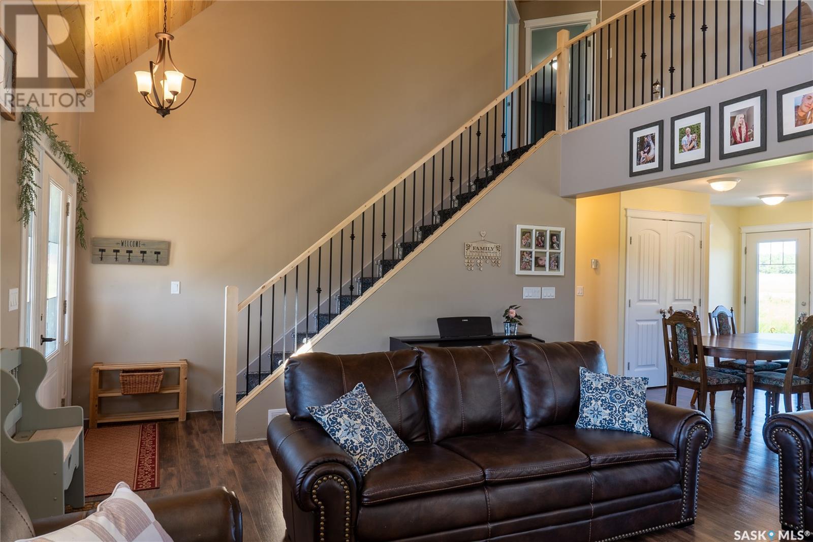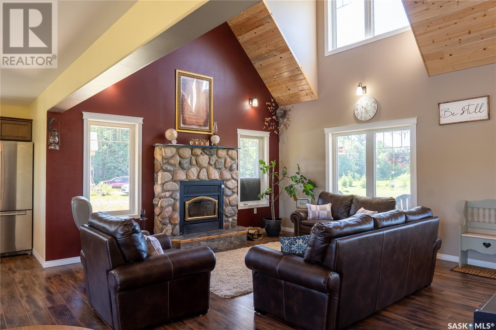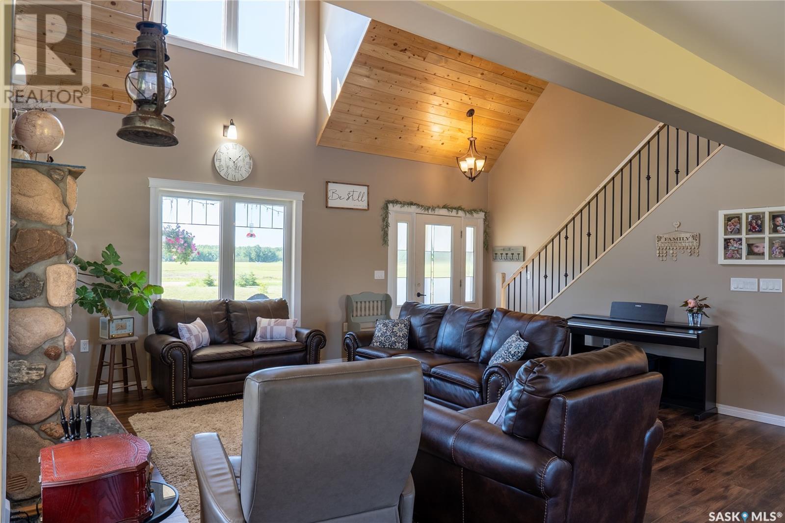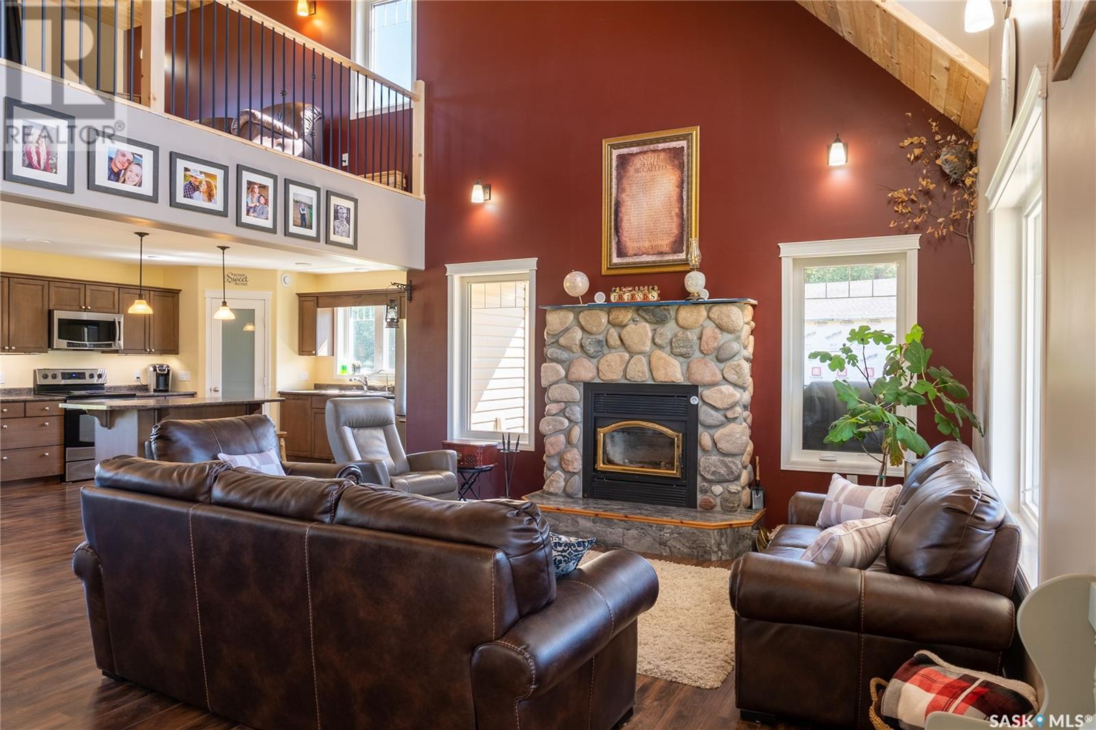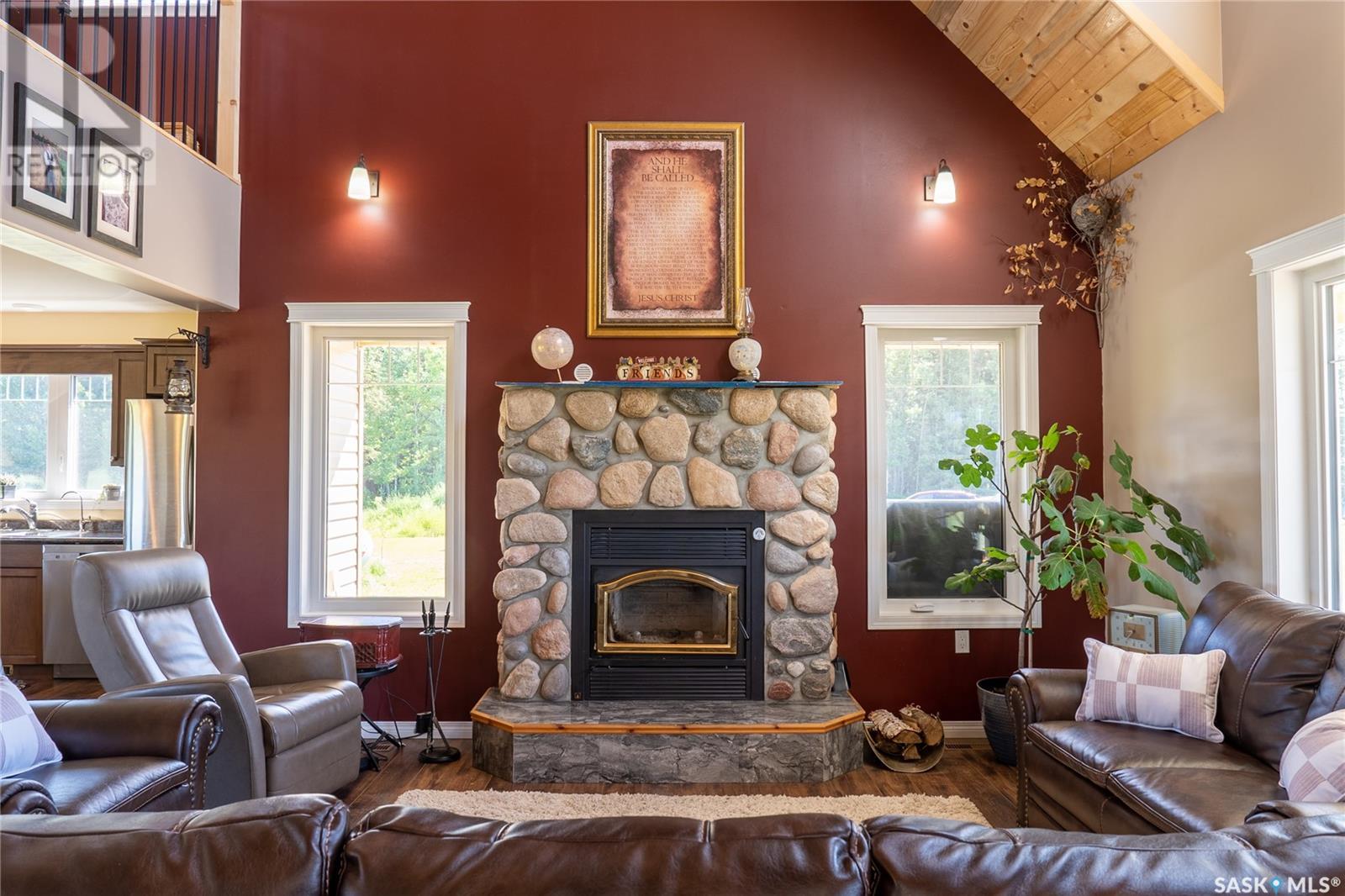 Welcome to the stunning "Turtle Lake Acreage" where privacy and serenity await you. This 10-acre property is nestled behind 3 acres of enchanting pine trees and opens up to 7 acres of lush green grass, providing the perfect escape from the hustle and bustle of everyday life. This property is a dream come true for any lake lover, with ample space for boats, campers, quads, snowmobiles, and ice shacks. The Turtle Grove Restaurant is within walking distance, and the Powm Public beach and playground are only 1km away. The Blueberry Hill Golf Course is just a three-minute drive, and the public boat launch is four minutes away. South-bay, which offers a playground, multipurpose basketball court, another boat launch, and three public beaches, is only 7km away. The property boasts 200 spruce trees, 25 pine trees, six apple trees, six elm trees, two Haskap berry plants, two cherry trees, and a garden surrounded by lilies, making it a picturesque paradise. The vibrant cottage-style house, built-in 2019, features a full wrap-around deck in the front and a 28x14 deck in the back. As you step inside, you'll be greeted by tongue n groove pine on the ceiling, a wood fireplace surrounded with stone, and a warm cabin ambiance. The living room and kitchen are incredibly spacious, perfect for hosting guests, and the island seats three. The countertops are finished with Laminate/Arborite, adding a modern touch. The main floor includes a master bedroom with an office, walk-in closet, and an ensuite bathroom. Upstairs, you'll find two spacious bedrooms, a 4-piece bathroom, and a loft overlooking the living room, perfect for a cozy movie night on a rainy day. The 30x36 detached garage offers a second level ideal for storage and any toys you may have. Call today to book your private viewing. (id:43042)